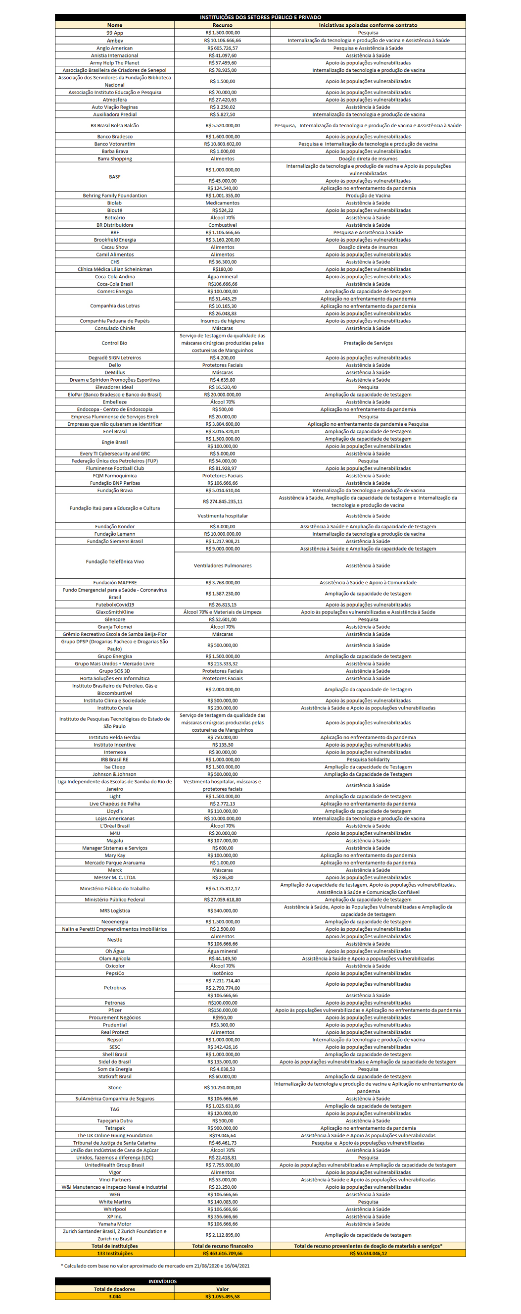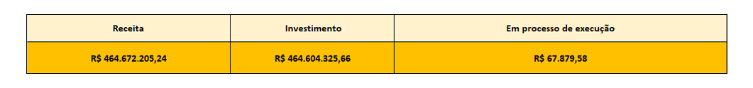 *Sendo R$ 464.672.205,24 por meio de repasses financeiros e R$ 50.634.046,12 por serviços e materiais doados.